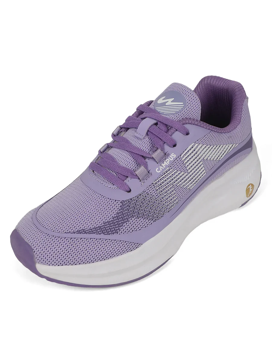 Combine high style and performance, and you get Ciara Women’s Running shoes by Campus! Featuring an Anti-Slip Sole Design, these promise enhanced traction that makes them ideal for running and other everyday activities. Proper air circulation aided by the breathable mesh upper keeps your stride fresh & sweat-free. With high-quality Nitrofly insole and EVA outer sole, these shoes make for a reliable and functional choice. The chic design in pastel purple hues enhances the aesthetic appeal, giving you the perfect versatile pair.